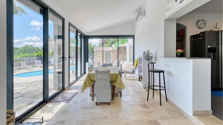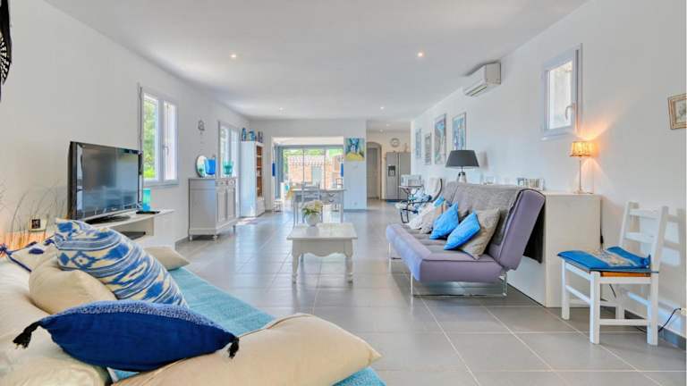 Das Ferienhaus verfügt über 3 Schlafzimmer, ein Wohnzimmer, eine voll ausgestattete Küche mit Kühlschrank und Kaffeemaschine sowie 2 Badezimmer mit Dusche und Badewanne. Klimaanlage ist ebenfalls vorhanden.