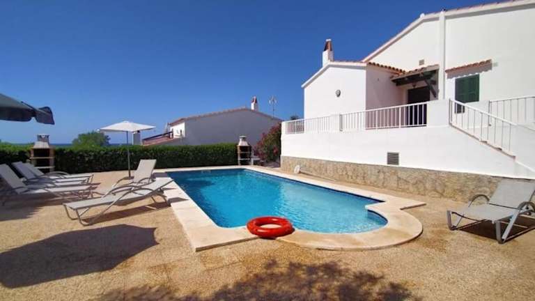 Die 3 Bedroom Villa, San Jaime, Son Bou ist eine komfortable Unterkunft in Son Bou, nur 1,2 km vom Strand Son Bou und 2,3 km vom Strand Cala de llucalari entfernt. Das Ferienhaus bietet klimatisierte Zimmer mit kostenfreiem WLAN, einen Außenpool und eine Terrasse. Genießen Sie den atemberaubenden Blick auf das Meer und den Pool von der Unterkunft aus. Die Lage ist ideal, da der Hafen von Mahon nur 21 km entfernt ist. Das Ferienhaus verfügt über 3 Schlafzimmer, eine gut ausgestattete Küche, einen gemütlichen Sitzbereich und 2 Badezimmer. Handtücher und Bettwäsche werden gestellt. Grillmöglichkeiten stehen Ihnen zur Verfügung und in der Nähe gibt es Möglichkeiten zum Schnorcheln. Der Berg Toro ist nur 19 km entfernt und der Golfplatz Son Parc Menorca erreichen Sie nach 22 km. Der Flughafen Menorca ist ebenfalls nur 21 km entfernt.