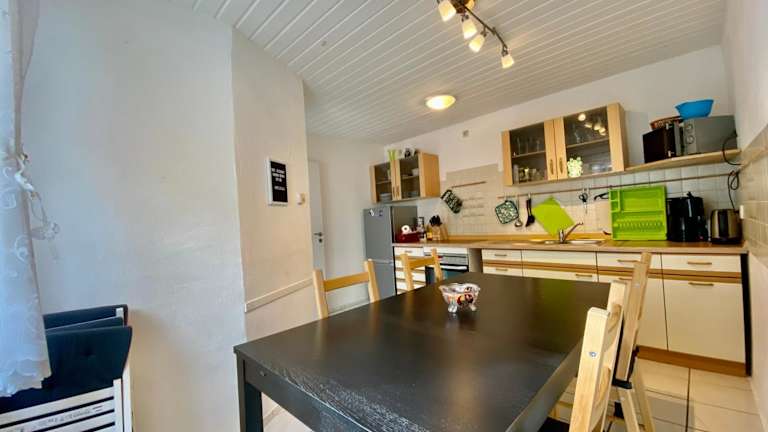 Es besteht die Möglichkeit der Essenslieferung in die Unterkunft. Die Küche der Ferienwohnung ist gut ausgestattet und enthält einen Kühlschrank sowie einen Geschirrspüler, was die Zubereitung eigener Mahlzeiten erleichtert.