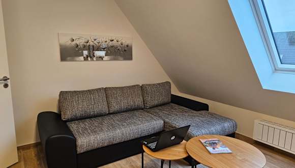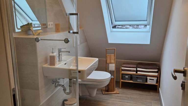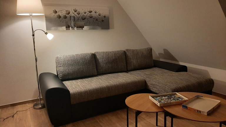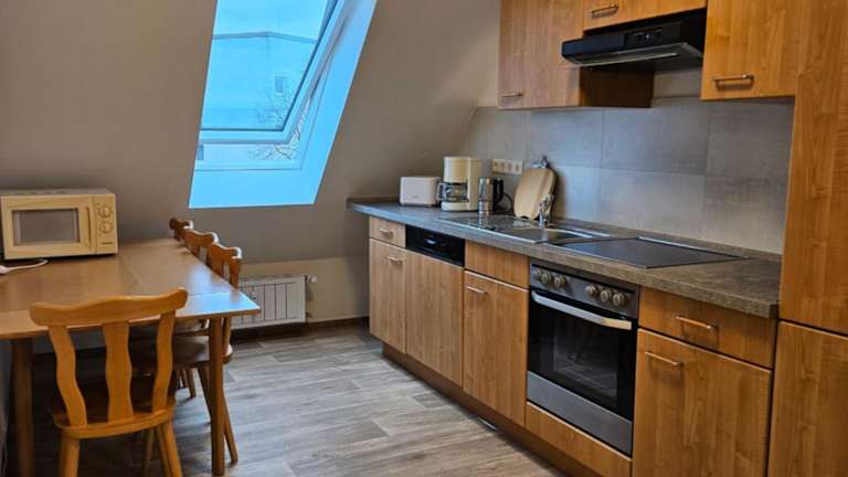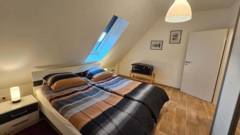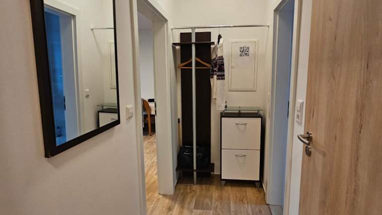 Die Ferienwohnung umfasst zwei Schlafzimmer, ein Wohnzimmer und eine voll ausgestattete Küche mit Kühlschrank und Kaffeemaschine. Zudem gibt es ein Badezimmer mit Dusche. Handtücher und Bettwäsche werden bereitgestellt.