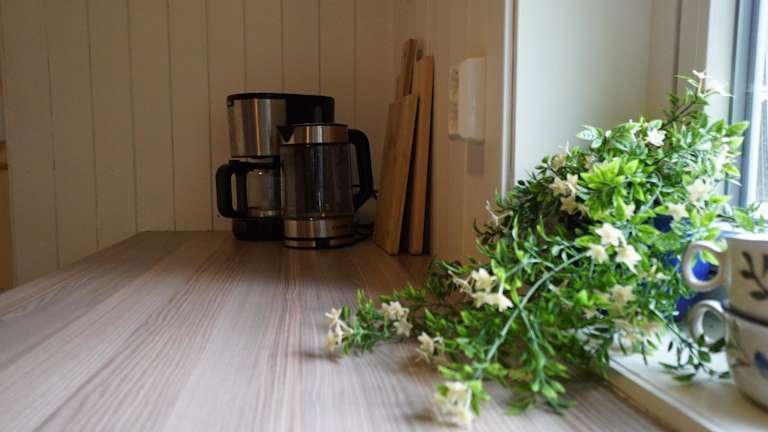 Die Ferienwohnung umfasst ein Schlafzimmer, ein Wohnzimmer und eine voll ausgestattete Küche mit Kühlschrank und Kaffeemaschine. Das Badezimmer ist mit einer Dusche und einem Haartrockner ausgestattet. Handtücher und Bettwäsche werden bereitgestellt.