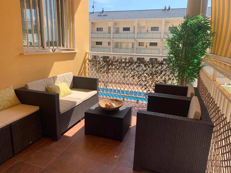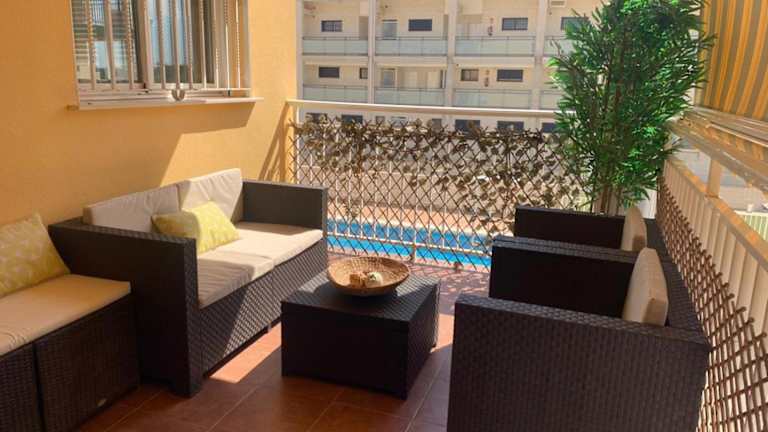 Das Apartment im Apto con piscina en la playa cerca de VLC con AC verfügt über drei Schlafzimmer und drei Badezimmer. Es ist geschmackvoll eingerichtet und bietet Annehmlichkeiten wie einen Flachbild-TV, eine voll ausgestattete Küche und eine Terrasse mit Blick auf den Pool. Die klimatisierten Zimmer sorgen für angenehme Temperaturen während Ihres Aufenthalts und eine Waschmaschine steht Ihnen ebenfalls zur Verfügung. Bettwäsche und Handtücher werden gestellt.