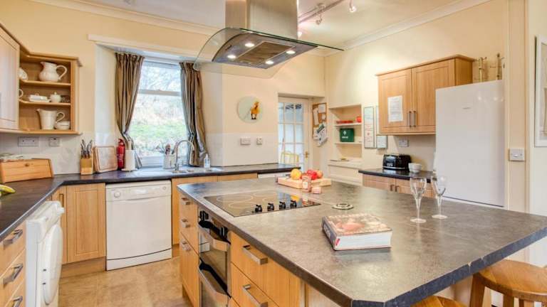 Das Ferienhaus umfasst 4 separate Schlafzimmer, eine voll ausgestattete Küche mit Kühlschrank und Geschirrspüler sowie 4 Badezimmer. Handtücher und Bettwäsche werden bereitgestellt.
