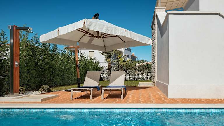 4-Bed Villa with Pool in Vabriga bietet Übernachtungsmöglichkeiten mit einem eigenen Pool, einer Terrasse und Blick auf den Garten. Die Unterkunft ist klimatisiert und umfasst 4 Schlafzimmer, ein Wohnzimmer und eine voll ausgestattete Küche. WLAN ist in der gesamten Unterkunft kostenlos verfügbar.