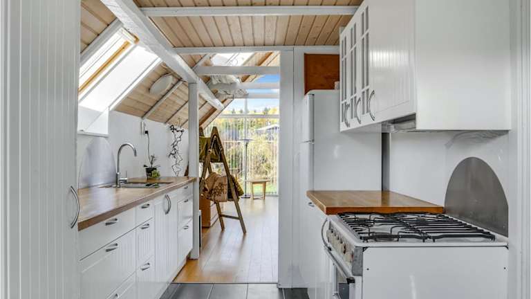 Das Ferienhaus beinhaltet eine Küche, ausgestattet mit einem Kühlschrank und einer Herdplatte, welche die Zubereitung eigener Mahlzeiten ermöglicht. Essensmöglichkeiten sind nicht ausdrücklich genannt.
