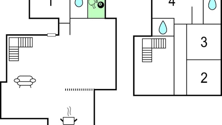 Das Ferienhaus beinhaltet 4 Schlafzimmer, ein Wohnzimmer sowie 3 Badezimmer, die sowohl mit einer Dusche als auch einer Badewanne ausgestattet sind.
