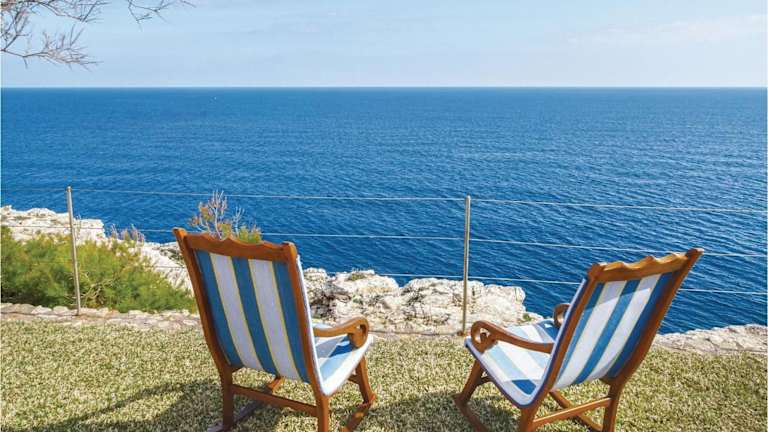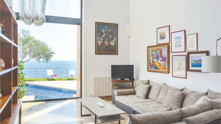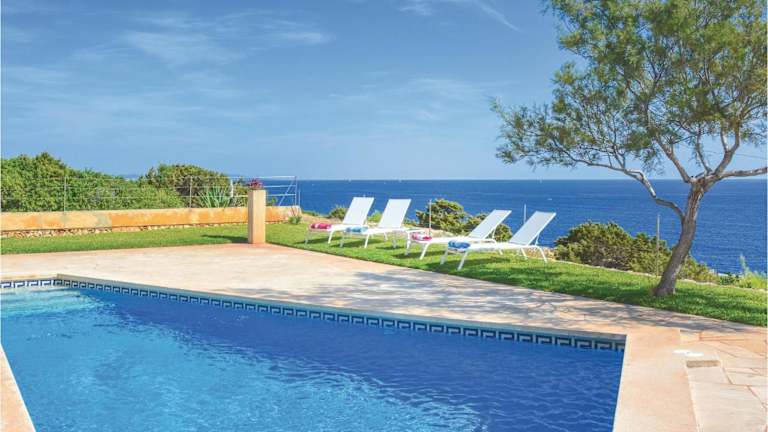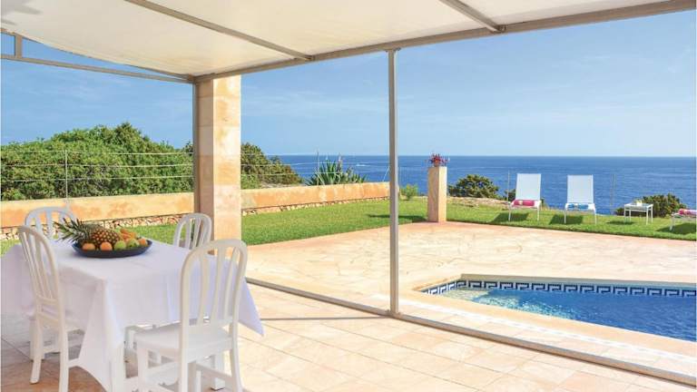Beautiful Home In Porto Colom With Private Swimming Pool, Can Be Inside Or Outside ist ein Ferienhaus mit eigenem Pool und Meerblick. Es bietet kostenloses WLAN und ist für einen komfortablen Aufenthalt ausgestattet.