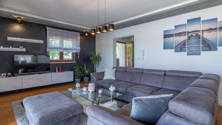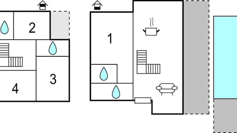 Das Ferienhaus verfügt über vier Schlafzimmer, ein Wohnzimmer sowie eine voll ausgestattete Küche mit Kühlschrank und Kaffeemaschine. Die vier Badezimmer sind mit Dusche und Badewanne ausgestattet.