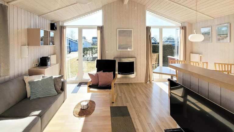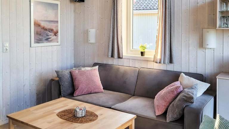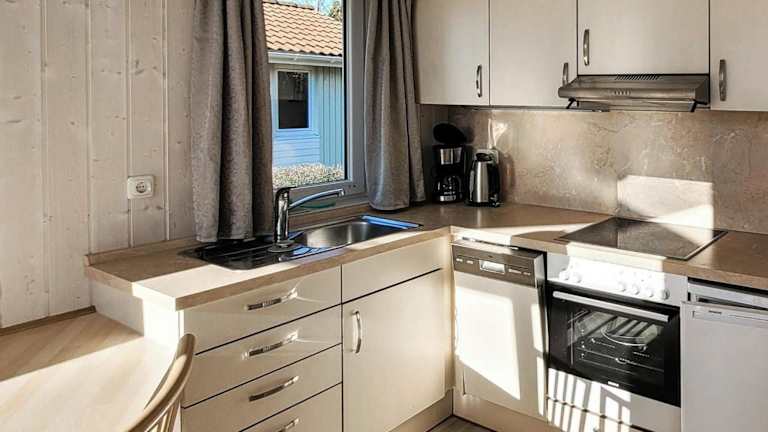 Das Ferienhaus umfasst zwei Schlafzimmer und einen TV mit Kabelkanälen. Die gut ausgestattete Küche ist mit einem Kühlschrank und einem Geschirrspüler ausgestattet. Zudem steht ein Badezimmer mit einer Badewanne oder Dusche zur Verfügung.