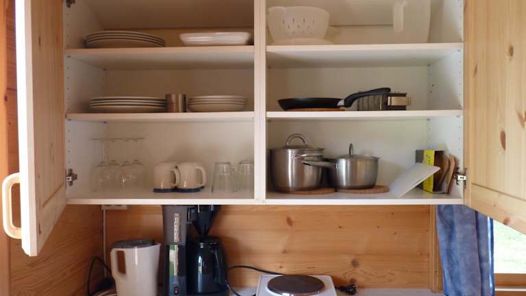 Das Ferienhaus verfügt über ein gemütliches Schlafzimmer, eine gut ausgestattete Küche mit Kühlschrank und Backofen sowie ein Badezimmer mit Dusche. Handtücher und Bettwäsche können gegen Aufpreis zur Verfügung gestellt werden.