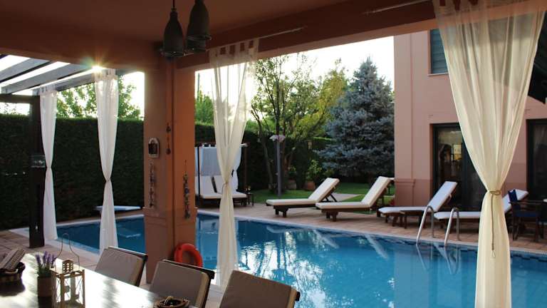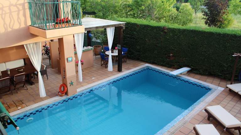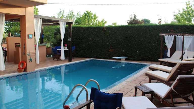 Genießen Sie den Außenpool und den Garten der 4-Jahreszeiten-Poolvilla. Entspannen Sie am Pool und lassen Sie den Alltag hinter sich. Die Villa bietet Ihnen auch eine gemütliche Bar und eine Gemeinschaftslounge, in der Sie sich mit anderen Gästen austauschen können. Nutzen Sie die Gelegenheit, um die Sehenswürdigkeiten in der Umgebung zu erkunden, wie das Trikala Municipal Folklore Museum und die Archäologische Sammlung von Trikki.