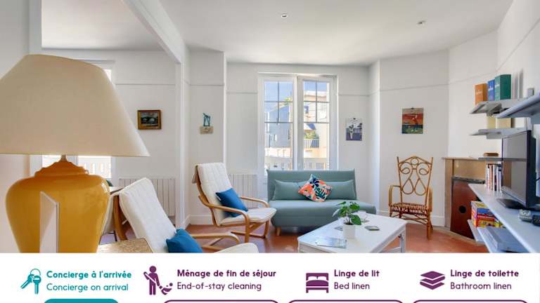 Die Unterkunft 400m de la plage, appart pour 5 en centre-ville bietet Übernachtungsmöglichkeiten in Form einer Ferienwohnung mit Annehmlichkeiten wie kostenlosem WLAN und einem TV. Die Wohnung ist für bis zu 5 Personen geeignet und bietet eine zentrale Lage in der Stadt.