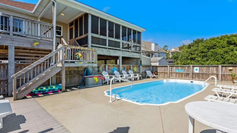 Verbringen Sie Ihren Urlaub im 4031 - Where R You in Kitty Hawk und genießen Sie eine komfortable Unterkunft mit eigenem Pool. Das Ferienhaus befindet sich in der Nähe der Strände Kitty Hawk und Southern Shores und bietet Ihnen die Möglichkeit, die Küste zu erkunden. Das Haus verfügt über eine Terrasse, eine voll ausgestattete Küche und einen TV für Ihren Komfort. Handtücher und Bettwäsche werden gestellt, um Ihren Aufenthalt angenehm zu gestalten.