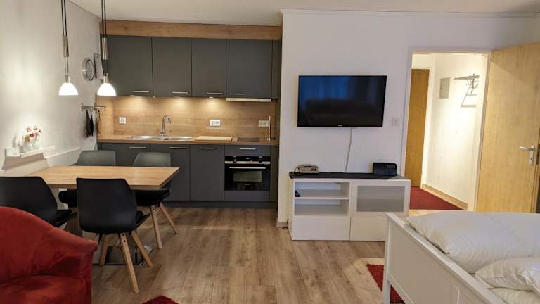 Das 4104 Stilvoll eingerichtetes Studio mit Suedbalkon bietet ein geschmackvoll gestaltetes Ambiente und vielfältige Annehmlichkeiten. Die Unterkunft verfügt über kostenloses WLAN und einen TV. Die Wohneinheiten sind mit einer Terrasse ausgestattet, die einen Ausblick auf die umliegenden Berge bietet.