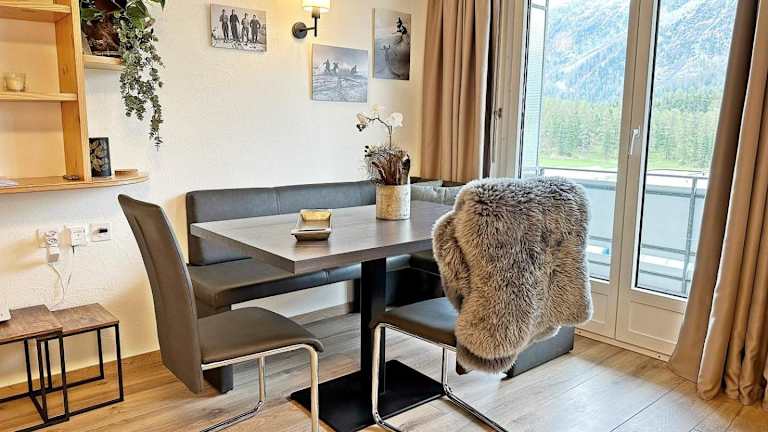 Die Unterkunft 42m2 Alpenschick mit Balkon, Ausblick, Pool - E405 befindet sich weniger als 11 km vom Engadine Golf Club in Samedan und 37 km vom Schweizerischen Nationalparkzentrum entfernt. Der Bahnhof St. Moritz liegt 4 km entfernt.