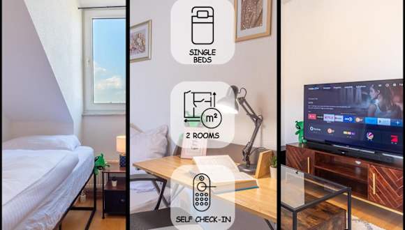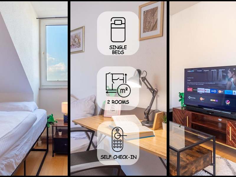 Die Ferienwohnung verfügt über 1 Schlafzimmer, ein Wohnzimmer sowie eine voll ausgestattete Küche mit Kühlschrank und Kaffeemaschine. Ein Badezimmer mit Dusche und Haartrockner ist ebenfalls vorhanden. Handtücher und Bettwäsche werden bereitgestellt.