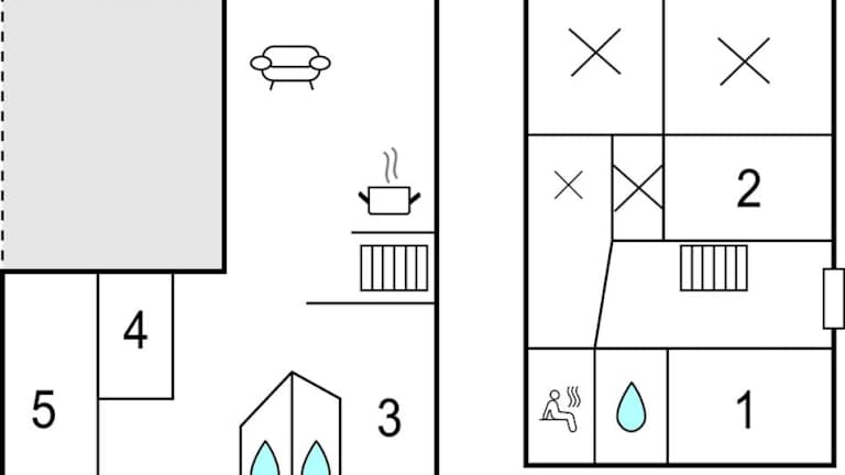 Das Ferienhaus umfasst fünf geräumige Schlafzimmer, ein Wohnzimmer sowie eine voll ausgestattete Küche mit Kühlschrank und Geschirrspüler. Zur technischen Ausstattung gehören ein TV und ein DVD-Player.