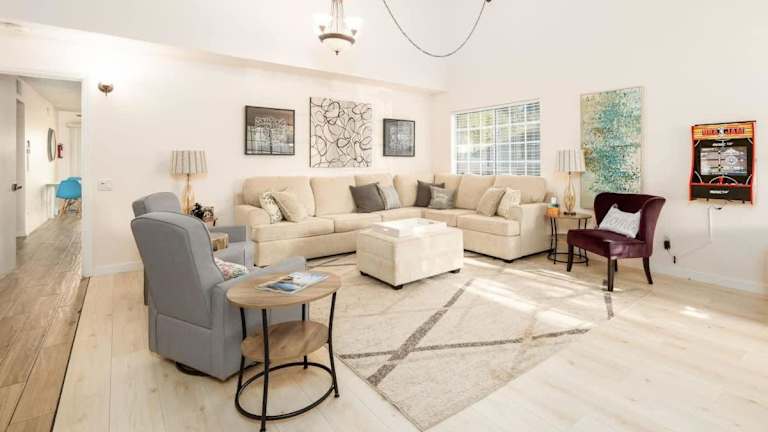 Das 5 Bedroom Home With Firepit bietet eine komfortable Unterkunft mit fünf Schlafzimmern und ist ideal für Familien oder Gruppen. Es stehen Annehmlichkeiten wie kostenloses WLAN und ein Garten zur Verfügung. Die Unterkunft ist klimatisiert und verfügt über eine Gemeinschaftsküche sowie eine TV-Ausstattung. Der Check-in erfolgt ab 16:00 Uhr und der Check-out bis 10:00 Uhr. Die Unterkunft ist eine Nichtraucherunterkunft und hat spezielle Regeln für Feiern.