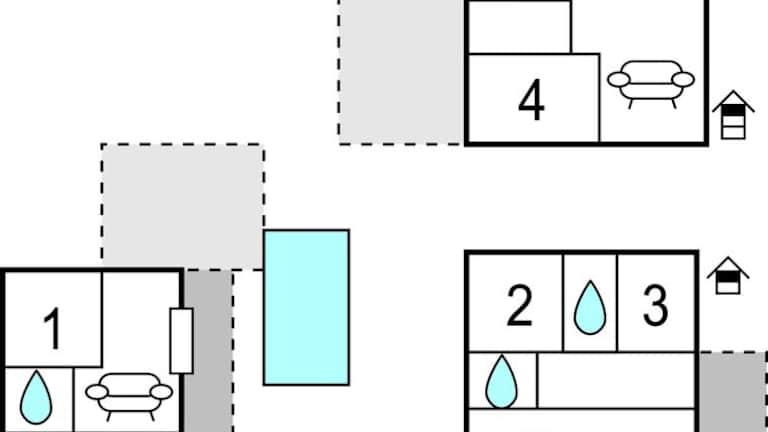Das Ferienhaus besteht aus 5 Schlafzimmern, einem Wohnzimmer, einer voll ausgestatteten Küche mit Kühlschrank und Kaffeemaschine sowie 3 Badezimmern, ausgestattet mit Dusche und Badewanne.