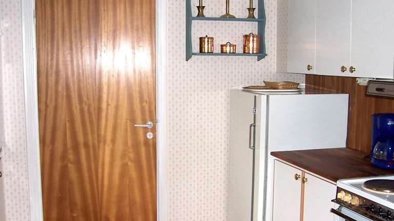 Das Ferienhaus umfasst zwei Schlafzimmer sowie ein Wohnzimmer, ausgestattet mit einem TV. Die Küche ist komplett eingerichtet mit einem Kühlschrank und einer Herdplatte. Das Badezimmer bietet eine Dusche.