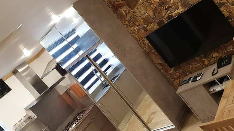 Das Studio umfasst ein Schlafzimmer, ein Wohnzimmer sowie eine komplett ausgestattete Küche. Diese ist mit einem Kühlschrank und einem Wasserkocher versehen. Das Badezimmer ist mit einer Dusche und einem Haartrockner ausgestattet. Handtücher und Bettwäsche werden in der Wohnung bereitgestellt.