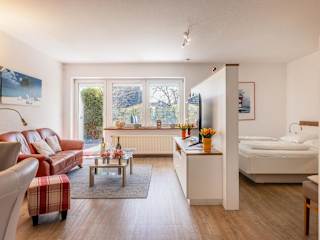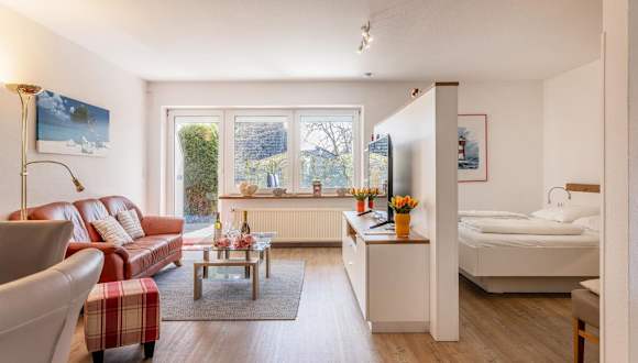 Die geräumige Unterkunft verfügt über ein Schlafzimmer, ein Wohnzimmer mit einem TV mit Satellitenkanälen sowie eine voll ausgestattete Küche mit Kühlschrank und Geschirrspüler. Ein Badezimmer mit Dusche ergänzt die Ausstattung der Ferienwohnung. Bettwäsche und Handtücher sind nicht im Preis enthalten und können auf Anfrage ausgeliehen oder selbst mitgebracht werden.