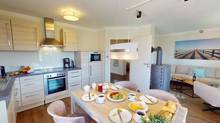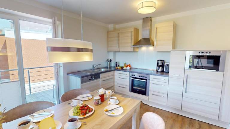 Die 54° Nord Wohnung 4 ist eine Ferienwohnung in Grömitz, die Übernachtungsmöglichkeiten mit Zugang zu einer Sauna bietet. Die Unterkunft verfügt über einen Balkon, einen kostenlosen Privatparkplatz und kostenfreies WLAN. Es handelt sich um eine Nichtraucherunterkunft, und es sind keine Feiern oder Haustiere gestattet.