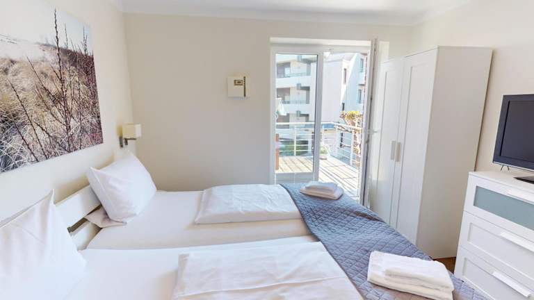 Die Ferienwohnung bietet Platz in zwei Schlafzimmern und ist ausgestattet mit einem Flachbild-TV mit Kabelkanälen sowie einer gut ausgestatteten Küche, die einen Kühlschrank und einen Geschirrspüler umfasst. Das Badezimmer ist mit einer Dusche ausgestattet. Handtücher und Bettwäsche werden bereitgestellt. Die Unterkunft bietet allergikerfreundliche Zimmer, und WLAN ist in allen Bereichen verfügbar.