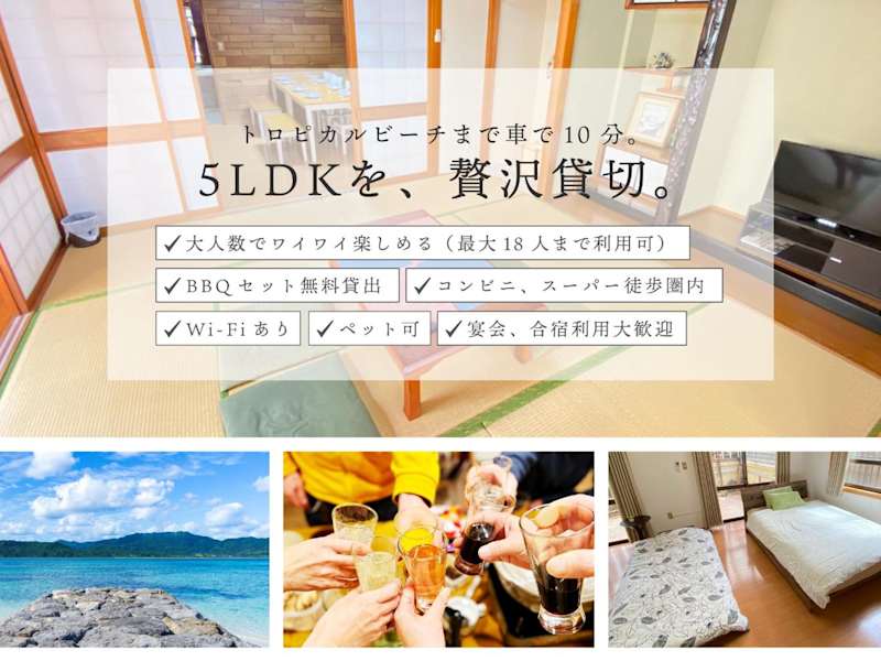 Die klimatisierte Wohnung im 5LDK宜野湾ゆんたくHOUSE verfügt über 5 separate Schlafzimmer, ein Wohnzimmer, eine voll ausgestattete Küche und ein Badezimmer. Die Wohnung bietet auch einen Balkon, der einen schönen Ausblick auf die Umgebung bietet. Kostenloses WLAN und ein Flachbildfernseher sorgen für Unterhaltung und Komfort während Ihres Aufenthalts.