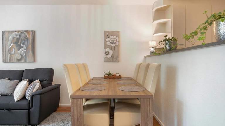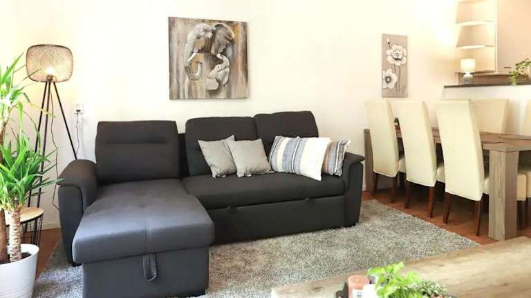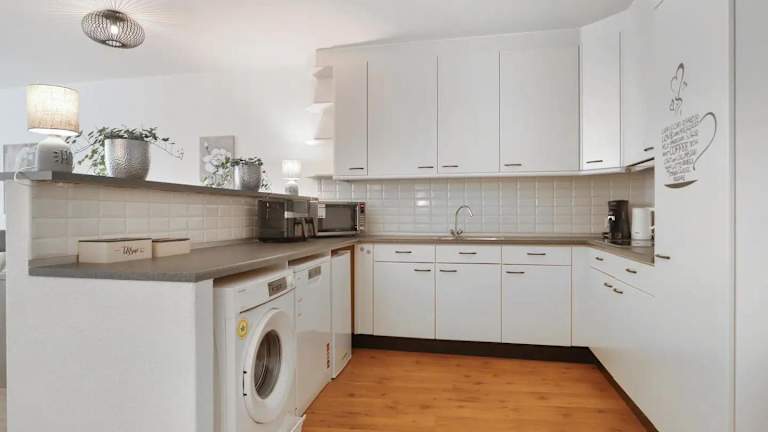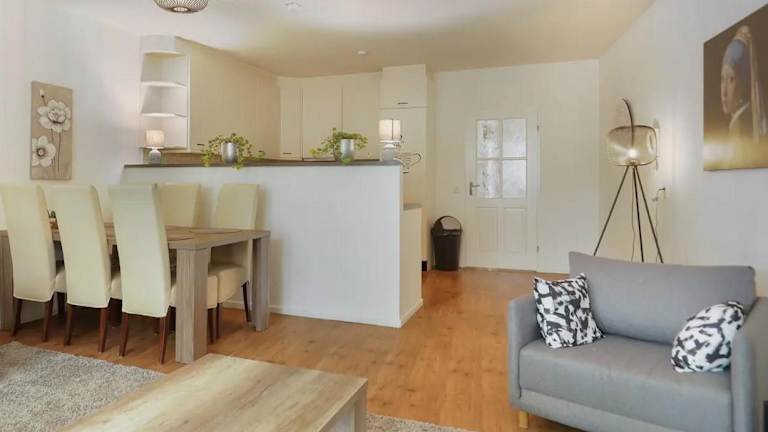 Die Ferienwohnung verfügt über ein Schlafzimmer, ein Wohnzimmer mit Kabel-TV, sowie eine voll ausgestattete Küche mit Kühlschrank und Geschirrspüler. Zudem ist ein Badezimmer vorhanden, das mit einem Haartrockner ausgestattet ist. Handtücher und Bettwäsche werden bereitgestellt, und die Unterkunft bietet einen Balkon.