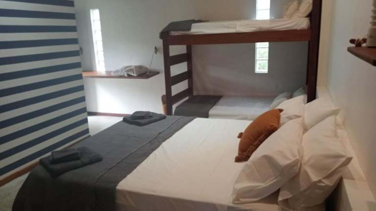 Die Unterkunft verfügt über 3 Schlafzimmer, die klimatisiert sind, und umfasst eine voll ausgestattete Küche mit Kühlschrank.