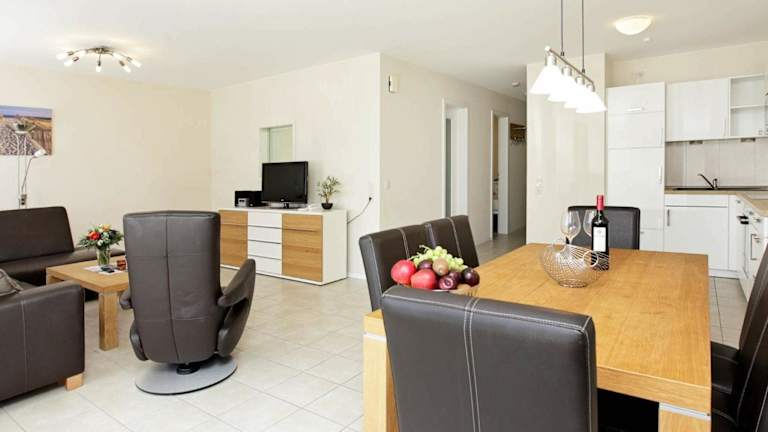 Die Unterkunft verfügt über 2 Schlafzimmer, eine voll ausgestattete Küche mit Kühlschrank und Geschirrspüler sowie 1 Badezimmer, das eine Badewanne oder Dusche beinhaltet. Weiterhin sind Bettwäsche, Handtücher und Wäsche in der Unterkunft verfügbar, welche gemäß den Richtlinien der örtlichen Behörden gewaschen wird.