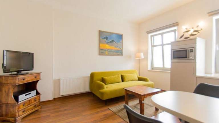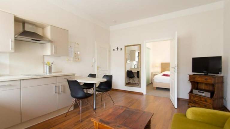 Die Ferienwohnung verfügt über ein Schlafzimmer, ein Badezimmer mit Dusche, eine gut ausgestattete Küchenzeile mit Kühlschrank und Geschirrspüler sowie einen TV mit Kabelkanälen. Handtücher und Bettwäsche werden bereitgestellt.