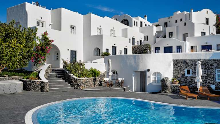 Das Finikia Memories Hotel liegt im kleinen Dorf Finikia, nur einen kurzen Spaziergang von der Stadt Oia entfernt. Die Lage bietet eine ruhige und malerische Umgebung, in der Sie die Schönheit der kykladischen Architektur und die atemberaubenden Sonnenuntergänge von Santorin erleben können. Das Hotel ist auch ein guter Ausgangspunkt für Ausflüge in die Umgebung und bietet eine gute Anbindung an öffentliche Verkehrsmittel.