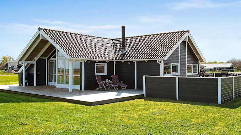Das Ferienhaus bietet kostenloses WLAN und einen Garten. Neben einer Terrasse mit Gartenblick verfügt es über drei Schlafzimmer, ein Wohnzimmer mit TV sowie zwei Badezimmer mit Dusche oder Badewanne. Die Unterkunft ist für bis zu acht Personen geeignet und bietet weiterhin eine Sauna. Ein Kinderspielplatz ist ebenfalls vorhanden.