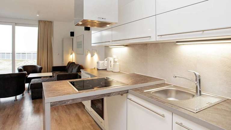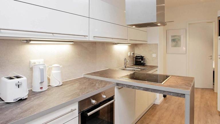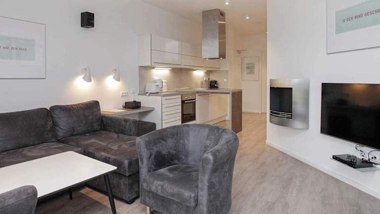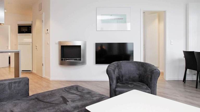 Das Apartment verfügt über drei Schlafzimmer, ein Wohnzimmer mit TV, eine voll ausgestattete Küche mit Kühlschrank und Geschirrspüler sowie ein Badezimmer mit Dusche. Das Ferienhaus bietet Platz für bis zu acht Personen und ist somit ideal für größere Gruppen oder Familien. Kostenfreies WLAN steht Ihnen ebenfalls zur Verfügung.
