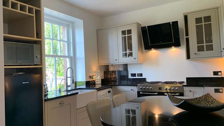 Das Apartment im 8 The Loan verfügt über zwei komfortable Schlafzimmer, ein großes Wohnzimmer und eine voll ausgestattete Küche. Die Küche ist mit einem Kühlschrank und einem Wasserkocher ausgestattet, so dass Sie bequem Ihre eigenen Mahlzeiten zubereiten können. Das Apartment verfügt auch über ein Badezimmer mit Dusche und Haartrockner. Es gibt auch einen separaten Sitzbereich, wo Sie sich entspannen und die schöne Umgebung genießen können.