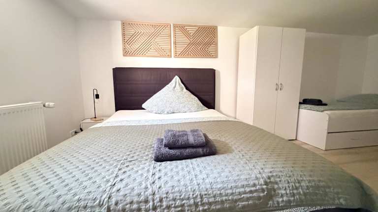 Die Ferienwohnung besteht aus drei Schlafzimmern, einem Wohnzimmer und einem Badezimmer, das mit einem Bidet und einer Dusche ausgestattet ist. Handtücher und Bettwäsche werden bereitgestellt. Zu den weiteren Annehmlichkeiten zählen WLAN und Heizung.