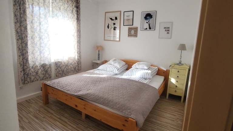 Die Ferienwohnung umfasst 80 qm und bietet drei getrennte Räume. Diese Unterkunft ist mit einem Balkon ausgestattet und beinhaltet Grillmöglichkeiten sowie kostenfreies WLAN und einen kostenlosen Privatparkplatz. Der Check-in ist zwischen 16:00 Uhr und 23:00 Uhr möglich, während der Check-out von 06:00 Uhr bis 10:00 Uhr erfolgt.