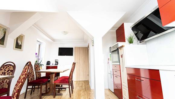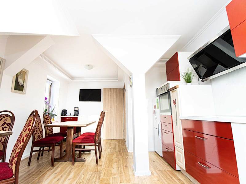 Die Ferienwohnung umfasst zwei Schlafzimmer, eine Küche, die mit einem Kühlschrank und einem Geschirrspüler ausgestattet ist, sowie ein Badezimmer mit einer Badewanne, Haartrockner und Waschmaschine. Handtücher und Bettwäsche werden bereitgestellt. Gäste profitieren zudem von Annehmlichkeiten wie Rauchmeldern und Videoüberwachung im Außenbereich.