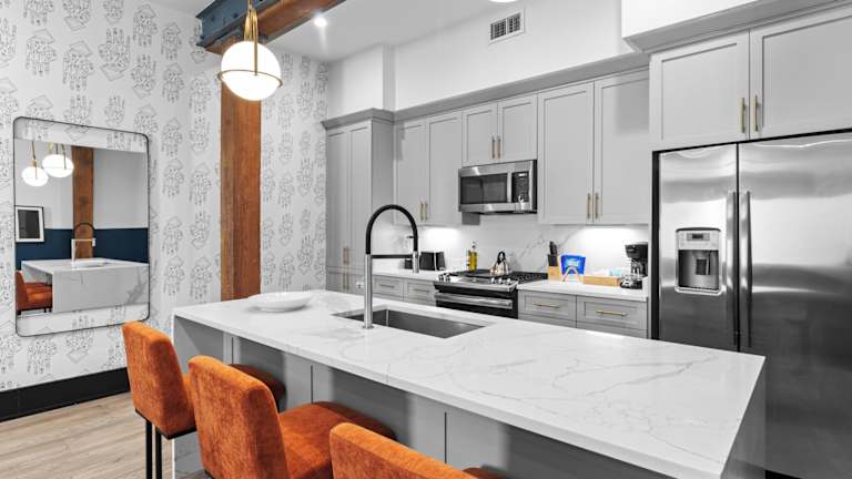 Die Zimmer im Roami at The Brandywine sind klimatisiert und bieten eine komfortable Unterkunft. Jedes Zimmer verfügt über eine voll ausgestattete Küche mit einem Essbereich, einen Flachbild-TV und ein eigenes Badezimmer mit kostenfreien Pflegeprodukten und einem Haartrockner. Zur Ausstattung gehören auch ein Kühlschrank, ein Backofen, ein Kochfeld, eine Kaffeemaschine und ein Wasserkocher.