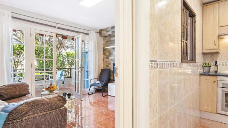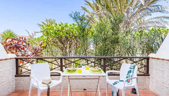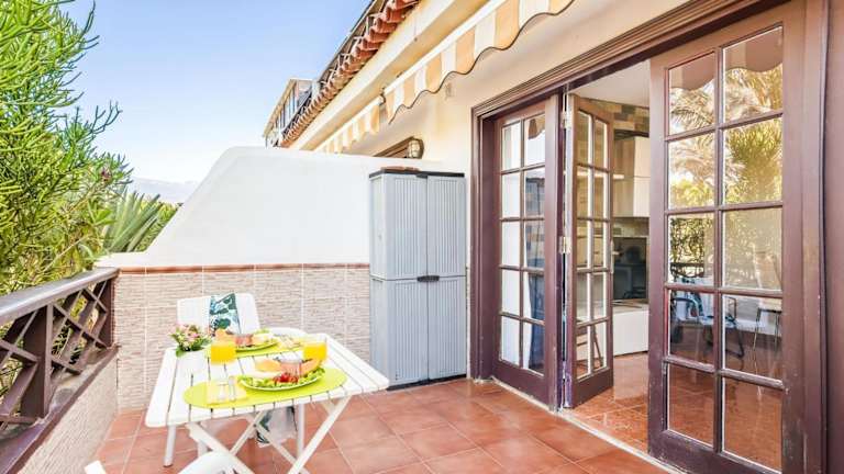 Die Unterkunft befindet sich etwa 600 Meter vom Strand Playa Amarilla entfernt. In der näheren Umgebung finden sich Golfplätze sowie Freizeitmöglichkeiten wie das Erlebnisbad Aqualand und verschiedene Wander- und Wassersportangebote. Der nächstgelegene Flughafen, Teneriffa Süd, ist 12 Kilometer entfernt.