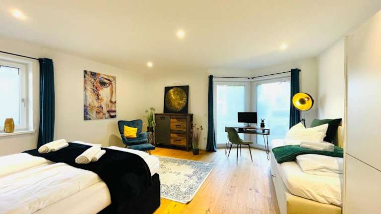 Das Deluxe Apartment mit Terrasse befindet sich in Rosenheim und ist eine ideale Ausgangsbasis, um die umliegende Region zu erkunden. In der Nähe des Apartments befinden sich verschiedene Sehenswürdigkeiten wie die Festung Kufstein und das Passionstheater Erl. Die Gegend eignet sich auch perfekt für Outdoor-Aktivitäten wie Wandern und Skifahren. Der nächstgelegene Flughafen ist der Flughafen Salzburg, der etwa 78 km entfernt liegt.