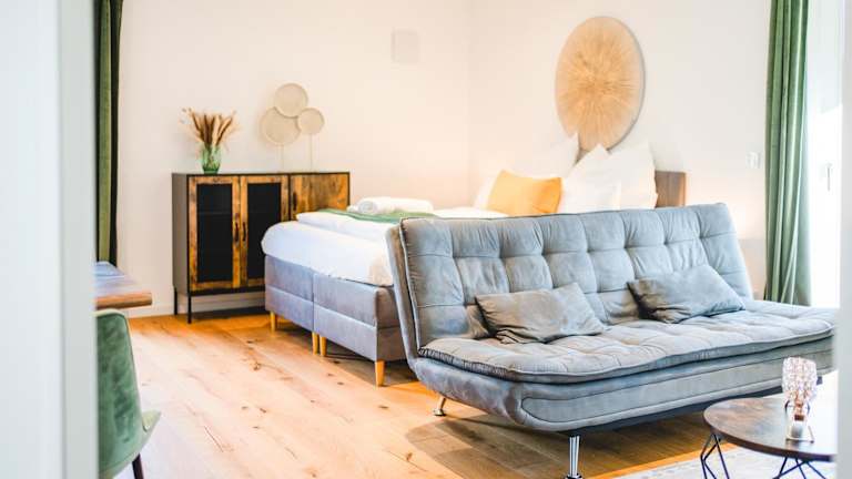 Das Deluxe Apartment mit Terrasse bietet eine komfortable Unterkunft mit moderner Ausstattung. Das Apartment verfügt über ein Schlafzimmer, ein Wohnzimmer und ein Badezimmer. Die voll ausgestattete Küche mit Kühlschrank und Geschirrspüler ermöglicht es den Gästen, ihre eigenen Mahlzeiten zuzubereiten. Ein Flachbild-TV und kostenfreies WLAN stehen ebenfalls zur Verfügung. Handtücher und Bettwäsche werden gestellt, um den Gästen einen angenehmen Aufenthalt zu ermöglichen.