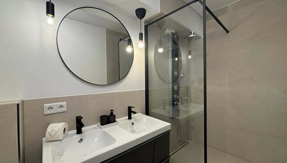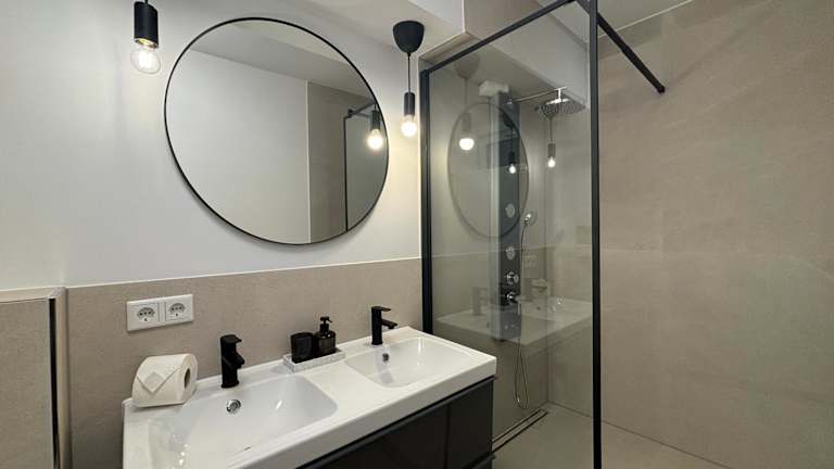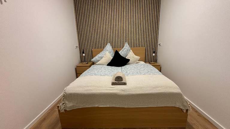 Die Ferienwohnung bietet eine Fläche von 90 qm mit 5 Zimmern, einschließlich 4 Schlafzimmern. Zu den Annehmlichkeiten zählen eine Gemeinschaftslounge, kostenloses WLAN, eine Gemeinschaftsküche sowie ein Geldautomat vor Ort. Zudem stehen den Gästen ein Balkon sowie eine Terrasse zur Verfügung.