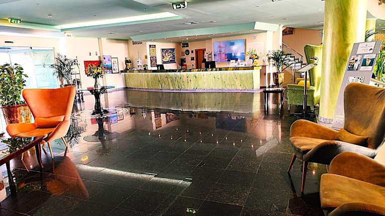 In der Küstenstadt Albufeira erwartet Sie dieses 4-Sterne-Hotel mit Blick auf den Atlantik, nur 800 m vom Strand entfernt und bietet einen Außenpool und Zimmer mit Balkon Die in neutralen Farben gehaltenen Zimmer im Hotel Baia Grande verfügen über Klimaanlage sowie einen Flachbild-TV mit Sat-Empfang und einer Minibar. Einige Zimmer bieten Panoramablick auf das Meer. Ihren Morgen beginnen Sie mit einem Frühstück vom Buffet auf der Sonnenterrasse bei Blick auf den Pool. Ein Restaurant und eine Pianobar laden im Hotel Baia zu einem Besuch ein und im Sommer wird in der Nähe des Pools gegrillt und folkloristische Musik gespielt. Im Spielezimmer des Hotels Grande können Sie Billard spielen und auch ein Innenpool mit Whirlpool verspricht erholsame Momente. Am Tourenschalter können Sie Fahrräder mieten und sich über die örtlichen Attraktionen informieren. Das Hotel Baia Grande liegt 35 Autominuten vom internationalen Flughafen Faro entfernt sowie 3 km vom Stadtzentrum. Mit dem Shuttlebus gelangen Sie nach Albufeira und zu den Stränden.