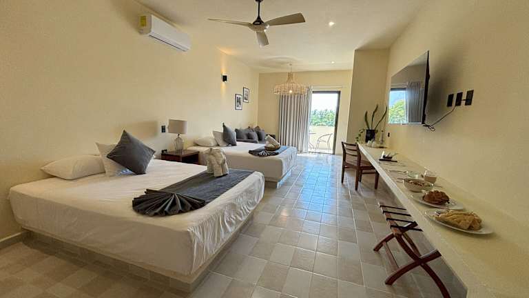 Das Hotel Casa Barbara auf der Isla Holbox bietet den Gästen eine günstige Lage direkt an der Hauptstraße der Insel. Der Strand und zahlreiche Geschäfte, Bars und Restaurants sind nur wenige Gehminuten entfernt. Das Hotel verfügt über einen Außenpool und einen Innenpool sowie einen schönen Garten und eine Sonnenterrasse. Das mehrsprachige Personal an der Rezeption steht den Gästen zur Verfügung und WLAN ist in allen Bereichen verfügbar. Das Hotel bietet auch ein Restaurant und eine Bar, in der Gäste ein leckeres Frühstück genießen können. Sport- und Wellnessangebote wie Windsurfen, Tauchen und Massage-Anwendungen sorgen für zusätzliche Entspannung und Spaß. Die Zimmer sind komfortabel eingerichtet und bieten Klimaanlage, TV, Safe und WLAN-Zugang.