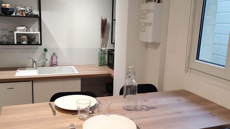 Die Unterkunft verfügt über eine Terrasse, ein Schlafzimmer, ein Wohnzimmer sowie eine gut ausgestattete Küche mit einem Kühlschrank und einer Mikrowelle. Zur Ausstattung gehören zudem kostenloses WLAN und ein Flachbild-TV. In der Ferienwohnung werden Handtücher und Bettwäsche bereitgestellt.