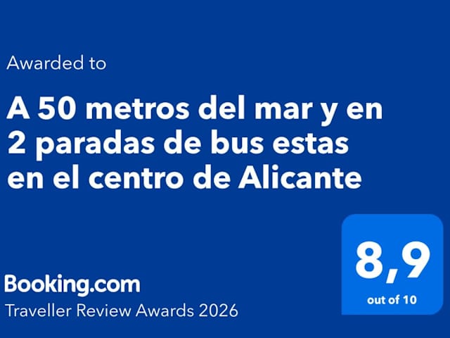 Die Unterkunft befindet sich in Alicante, nur 50 Meter vom Meer entfernt. In der Nähe gibt es Möglichkeiten zum Wandern und Angeln. Zwei Bushaltestellen ermöglichen eine schnelle Verbindung zum Stadtzentrum von Alicante. Die Strandabschnitte Playa de la Albufereta und Playa de la Almadraba sind 500 Meter bzw. 1,4 Kilometer entfernt. Der nächstgelegene Flughafen ist der Aeropuerto de Alicante-Elche, 20 Kilometer entfernt.
