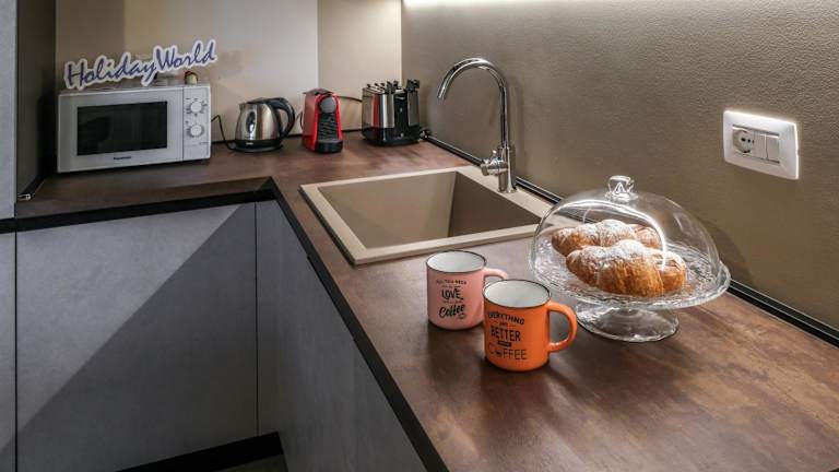 Die Ferienwohnung besteht aus einem Schlafzimmer, einem Wohnzimmer und einer komplett ausgestatteten Küchenzeile mit Kühlschrank und Kaffeemaschine. Das Badezimmer ist mit einem Bidet und einer Dusche ausgestattet. Für zusätzlichen Komfort können Handtücher und Bettwäsche gegen Aufpreis bereitgestellt werden. Die Unterkunft bietet Nichtraucherzimmer sowie Annehmlichkeiten wie Klimaanlage und Heizung.